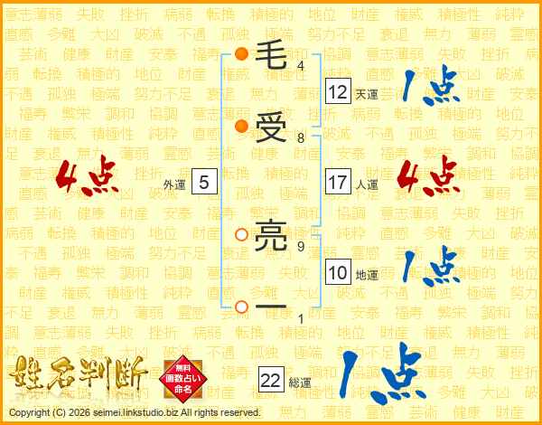 毛受亮一さんの人運は17画の4点!