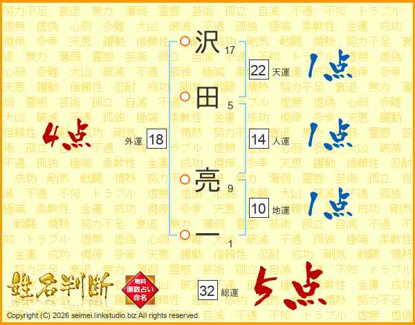 沢田亮一さんの総運は32画の5点!