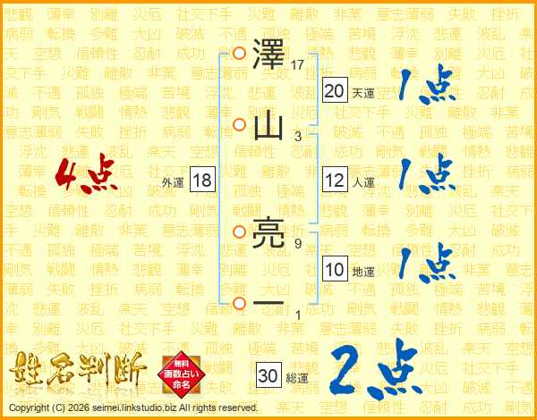 澤山亮一さんの総運は30画の2点!