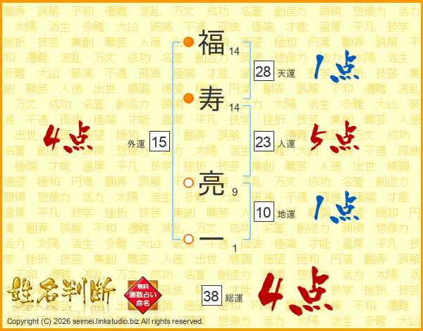 福寿亮一さんの総運は38画の4点!
