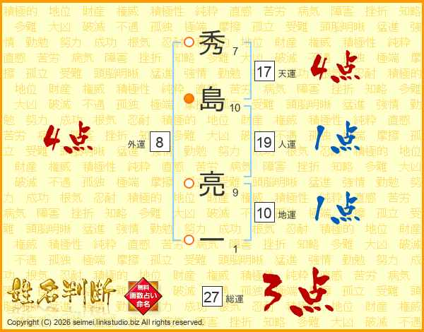 秀島亮一さんの天運は17画の4点!