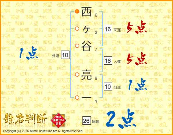 西ヶ谷亮一さんの天運は16画の5点!