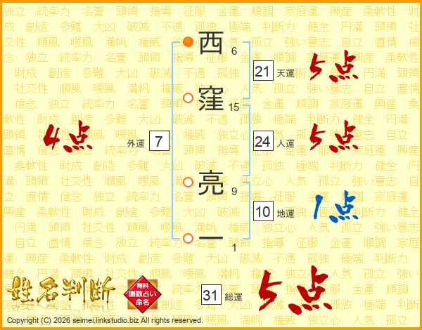 西窪亮一さんの総運は31画の5点!