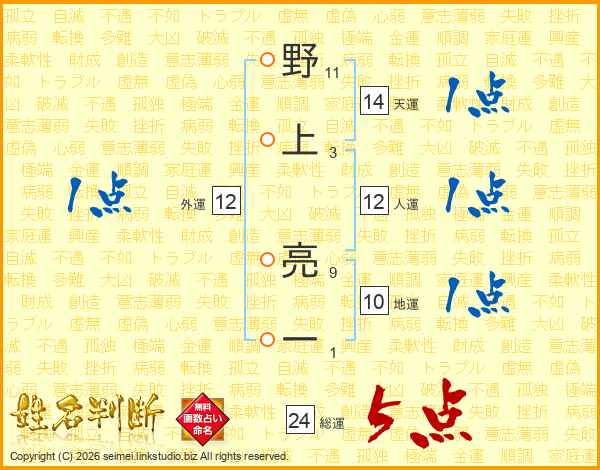 野上亮一さんの総運は24画の5点!