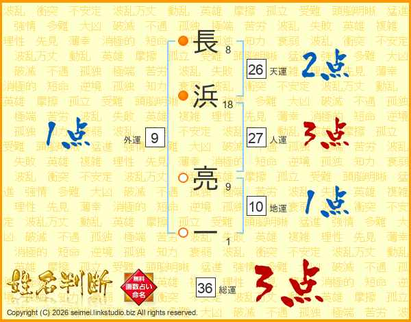 長浜亮一さんの総運は36画の3点!