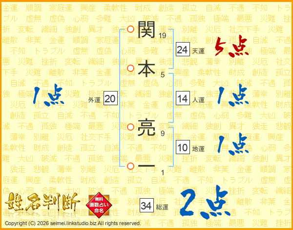 関本亮一さんの天運は24画の5点!