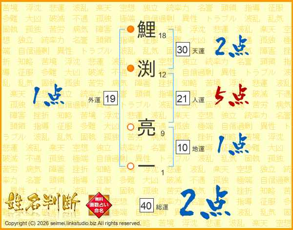 鯉渕亮一さんの総運は40画の2点!