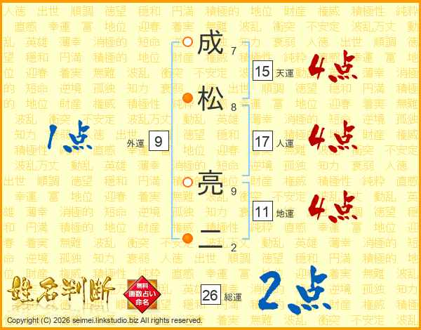 成松亮二さんの地運は11画の4点!