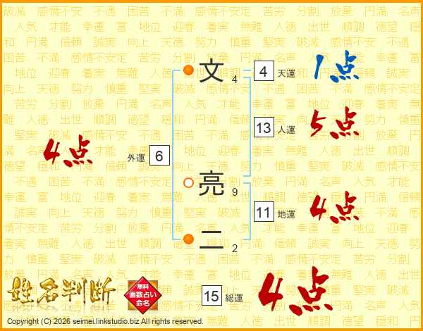 文亮二さんの総運は15画の4点!