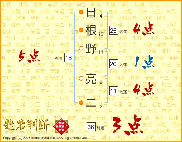 日根野亮二さんの天運は25画の4点!