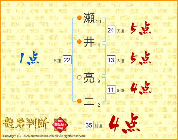 瀬井亮二さんの総運は35画の4点!