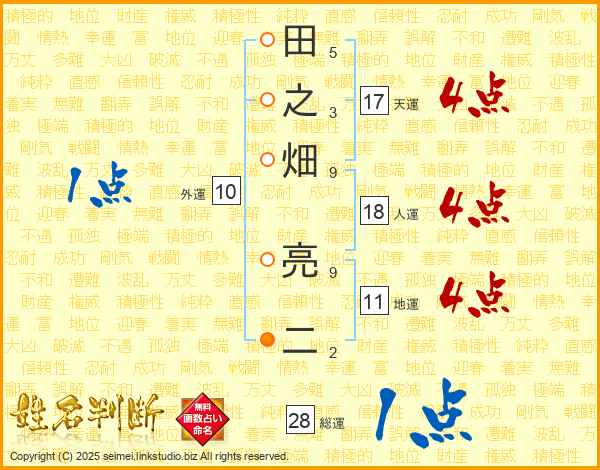 田之畑亮二さんの天運は17画の4点!