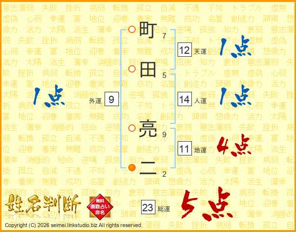 町田亮二さんの総運は23画の5点!