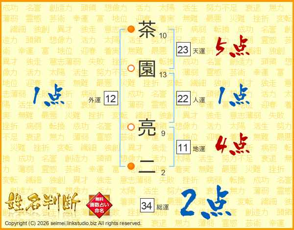 茶園亮二さんの天運は23画の5点!