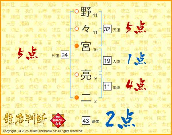 野々宮亮二さんの天運は32画の5点!