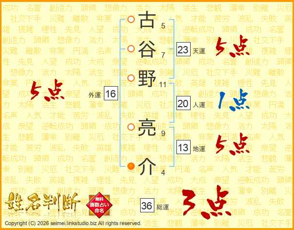 古谷野亮介さんの人運は20画の1点!