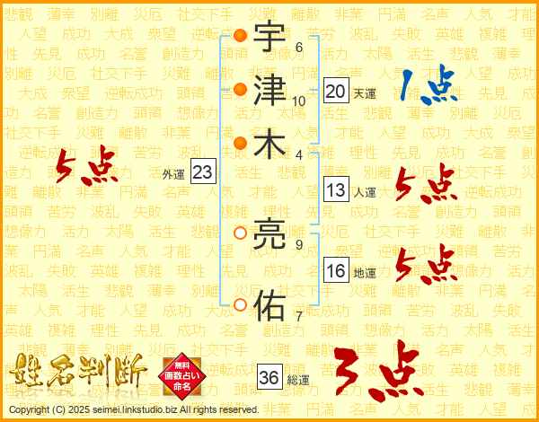 宇津木亮佑さんの総運は36画の3点!