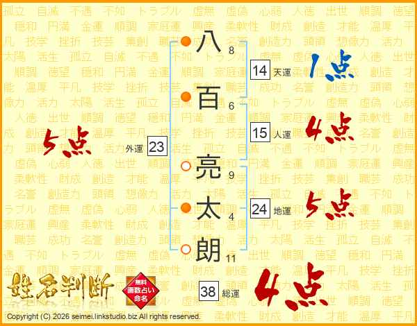 八百亮太朗さんの総運は38画の4点!