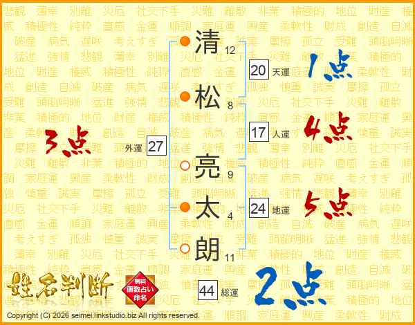 清松亮太朗さんの総運は44画の2点!