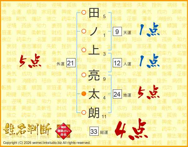 田ノ上亮太朗さんの総運は33画の4点!