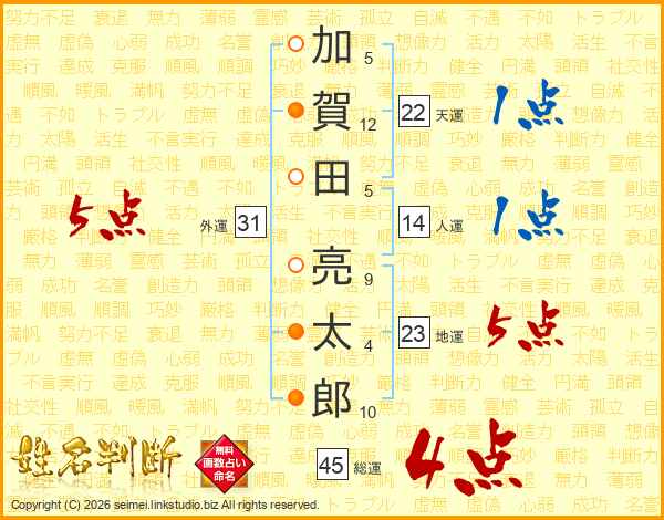 加賀田亮太郎さんの総運は45画の4点!