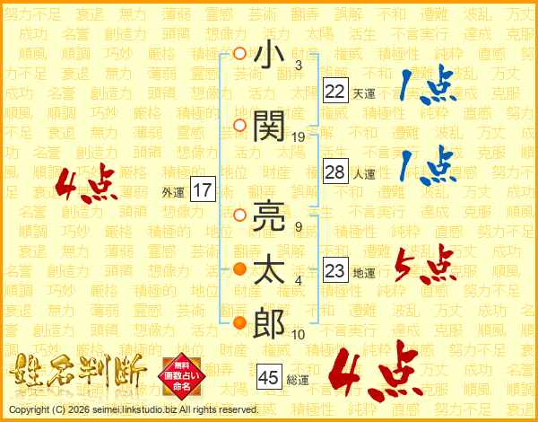 小関亮太郎さんの総運は45画の4点!
