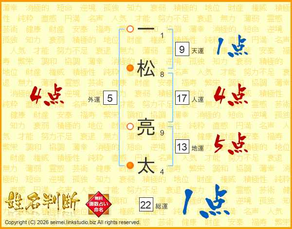 一松亮太さんの人運は17画の4点!