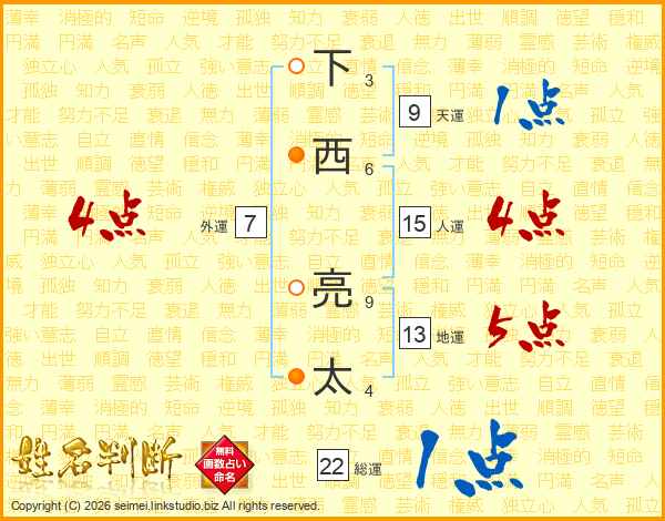 下西亮太さんの地運は13画の5点!