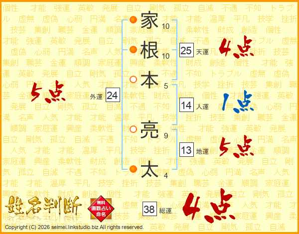 家根本亮太さんの総運は38画の4点!