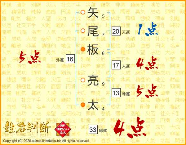 矢尾板亮太さんの総運は33画の4点!