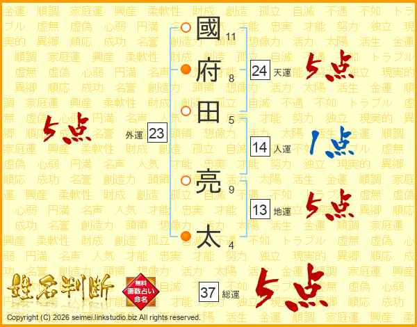 國府田亮太さんの総運は37画の5点!