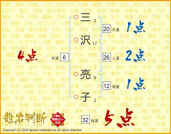 三沢亮子さんの総運は32画の5点!