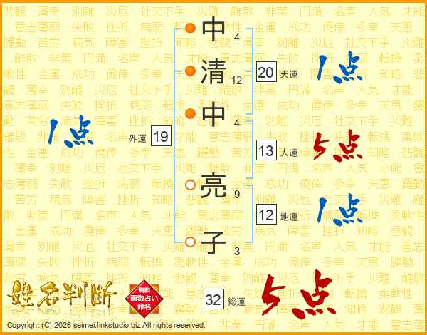 中清中亮子さんの総運は32画の5点!