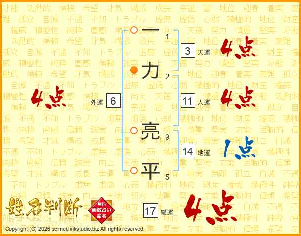 一力亮平さんの総運は17画の4点!