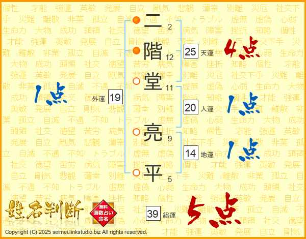 二階堂亮平さんの総運は39画の5点!