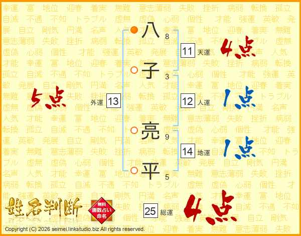 八子亮平さんの総運は25画の4点!