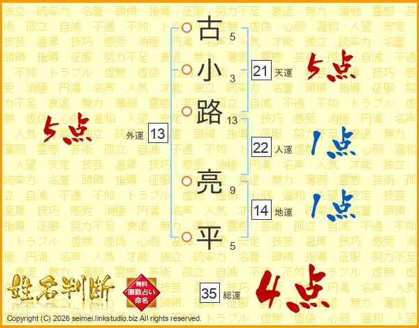 古(5画)小(3画)路(13画) 亮(9画)平(5画)