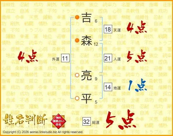 吉森亮平さんの人運は21画の5点!