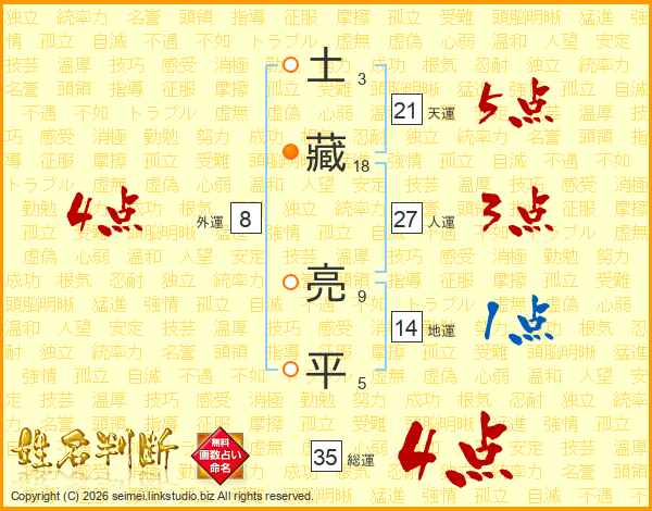 土藏亮平さんの総運は35画の4点!