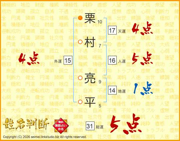 栗村亮平さんの天運は17画の4点!