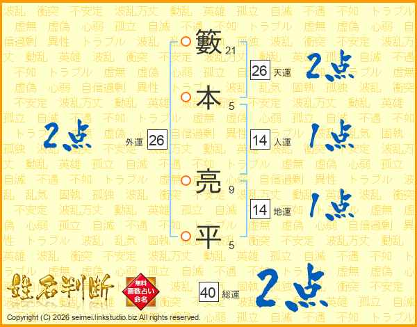 籔本亮平さんの天運は26画の2点!