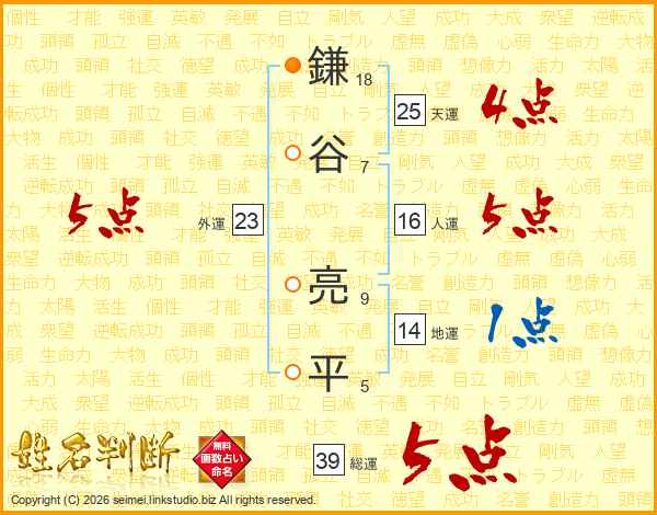鎌谷亮平さんの総運は39画の5点!