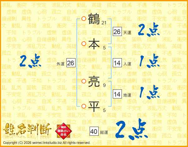 鶴本亮平さんの天運は26画の2点!