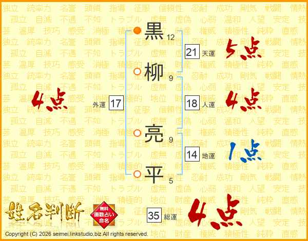 黒柳亮平さんの総運は35画の4点!