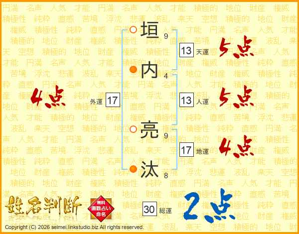 垣内亮汰さんの総運は30画の2点!