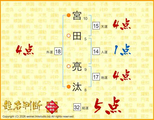 宮田亮汰さんの総運は32画の5点!