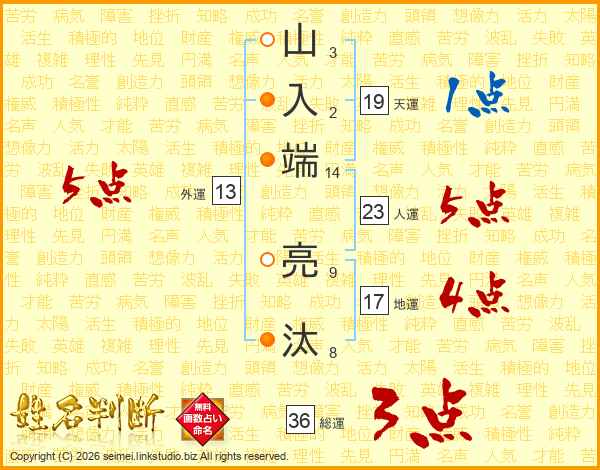 山入端亮汰さんの総運は36画の3点!