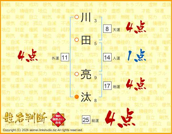 川田亮汰さんの総運は25画の4点!