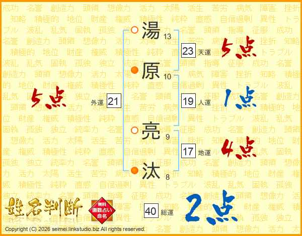 湯原亮汰さんの総運は40画の2点!