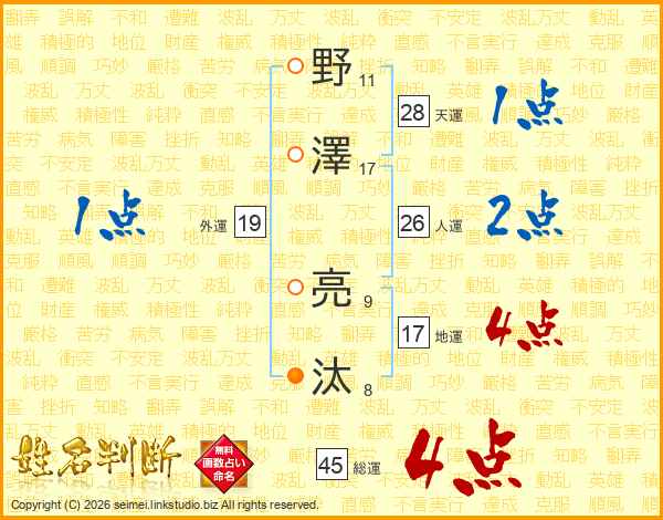 野澤亮汰さんの総運は45画の4点!